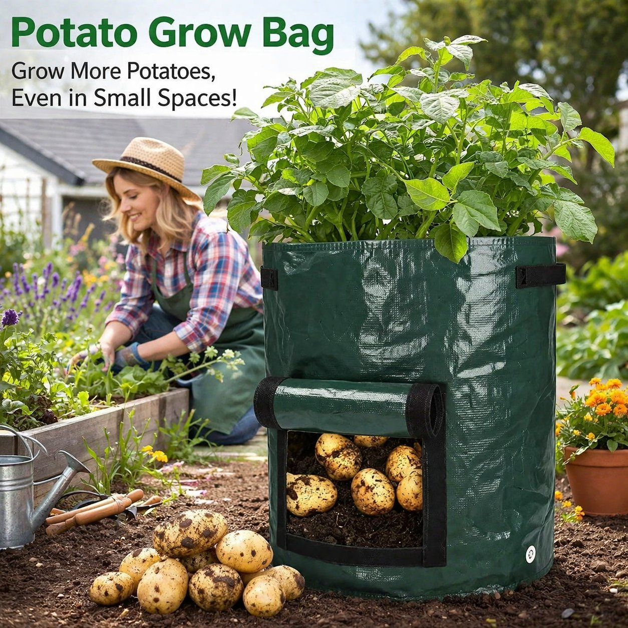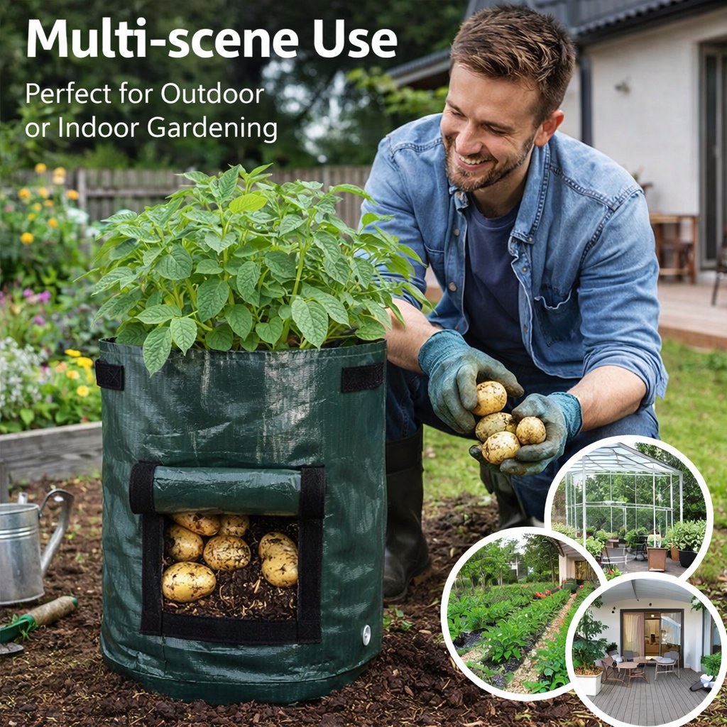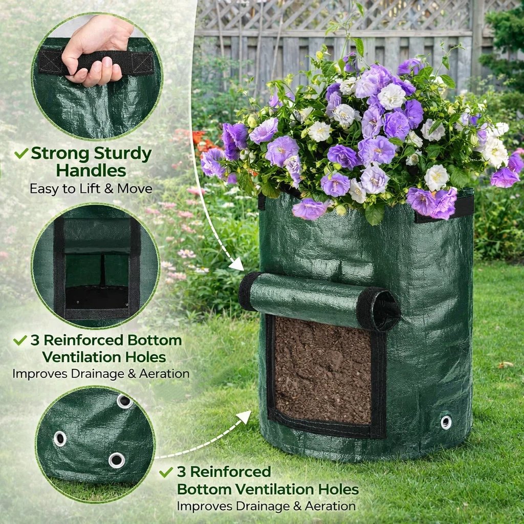 Reusable and durable planting bags made from breathable PE material. Ideal for potatoes, tomatoes, herbs, and flowers, with excellent drainage, ventilation, and easy harvesting.